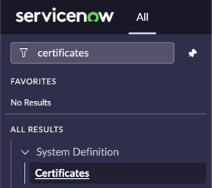 In the left sidebar, enter certificates and press