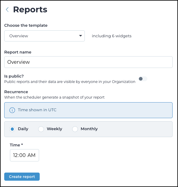 - In the Time field, set the time that the report will be generated.
